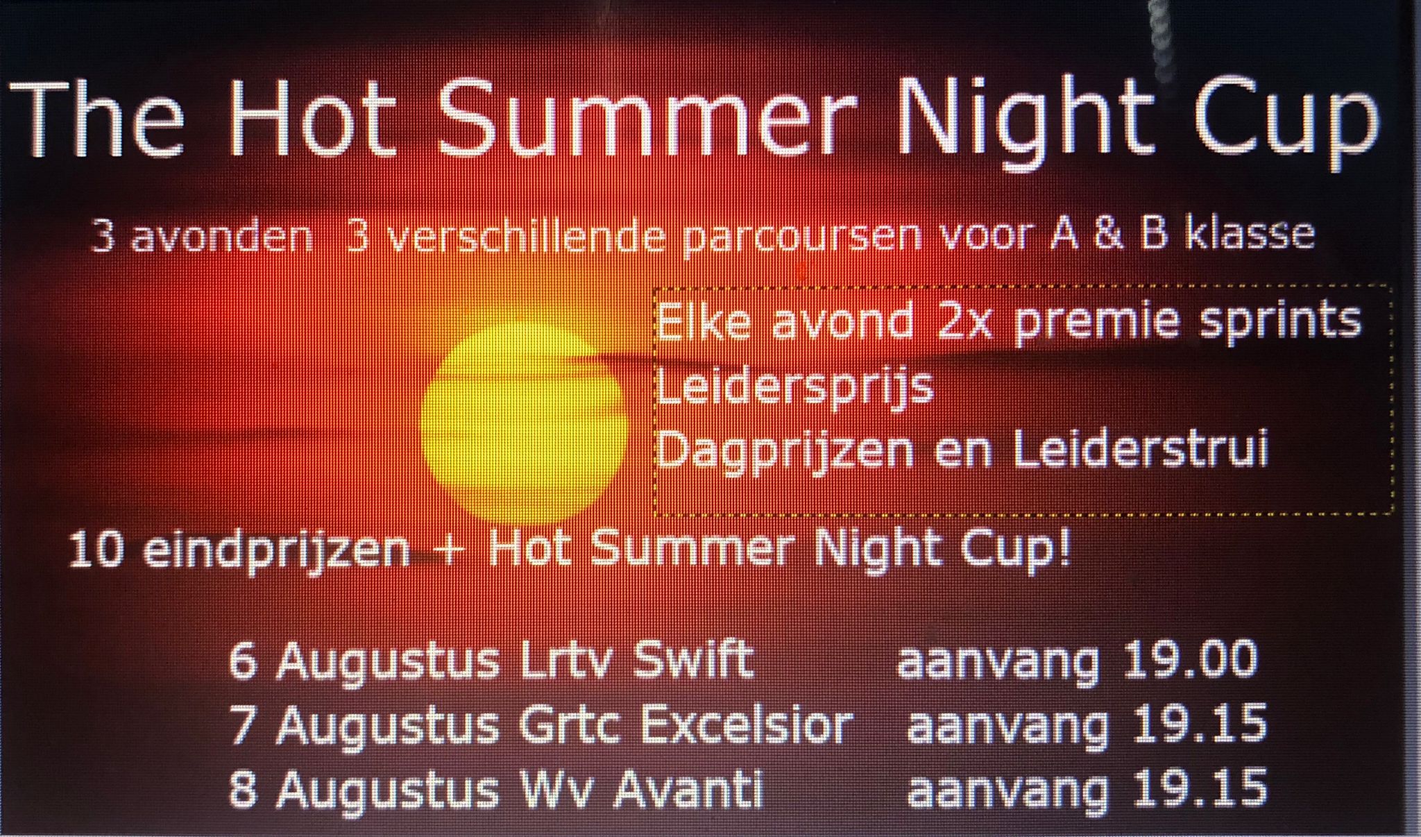 Dit jaar organiseren we in samenwerking met LRTV Swift en GRTC Excelsior een driedaags evenement, de Hot Summer Night Cup.
