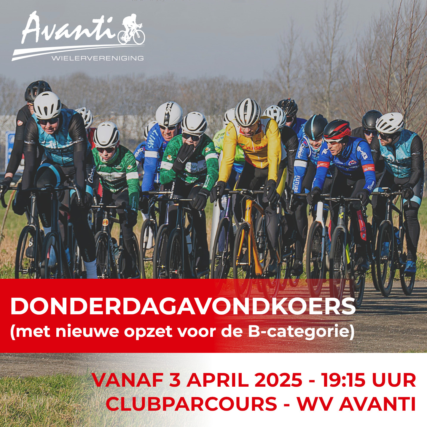 Donderdagavond 3 april, start om 19.15, locatie wielervereniging Avanti, Amerikalaan.