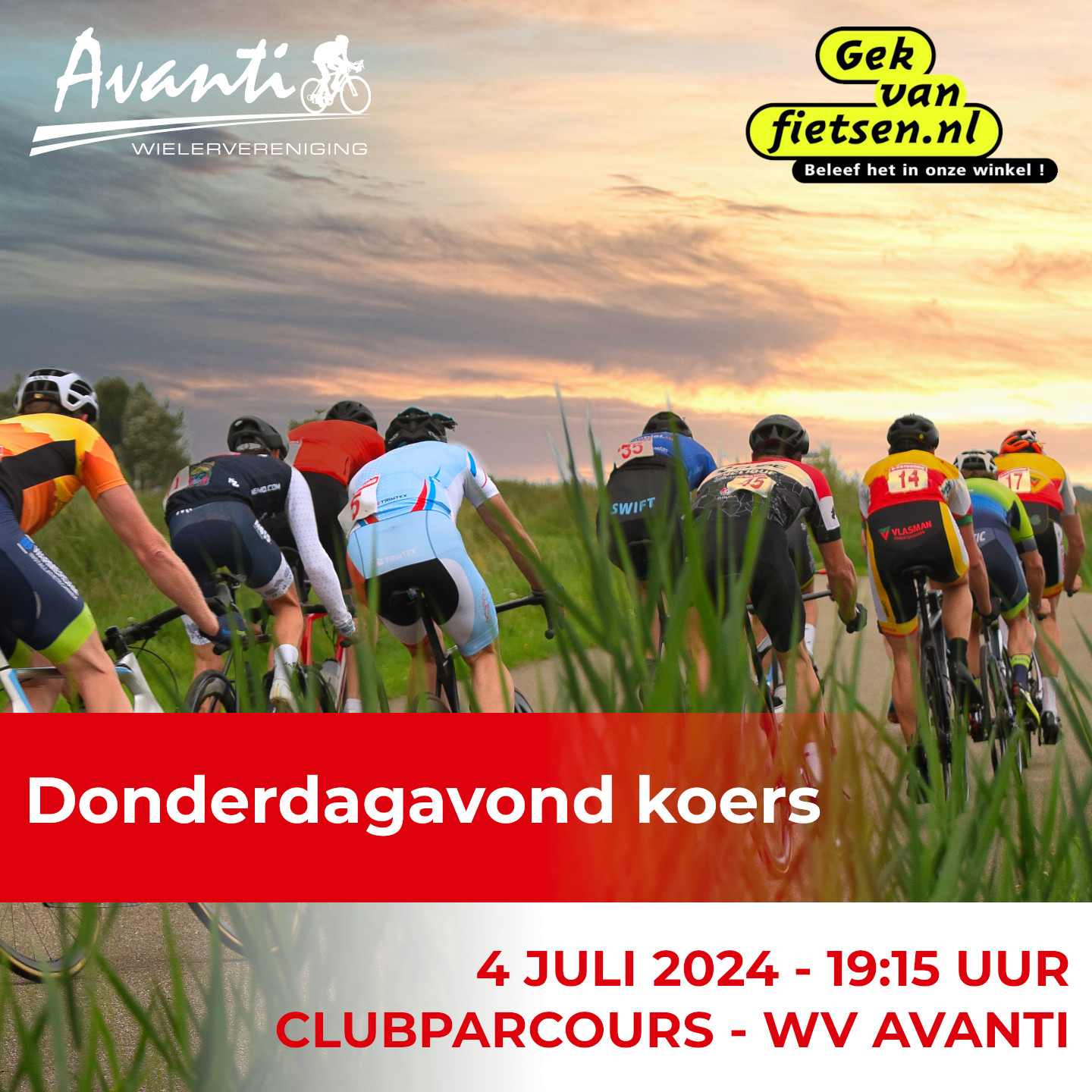 Op donderdag 4 september wordt het clubkampioenschap verreden voor WV Avanti-leden (vanaf de Nieuwelingen). Er wordt gereden in één wedstrijd met een A-, B-peloton met de volgende categorieën: • Elite, Beloften, Klasse 1 en Junioren (A-peloton) • Klasse 2 e.v....